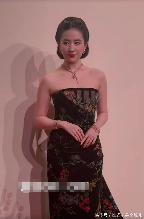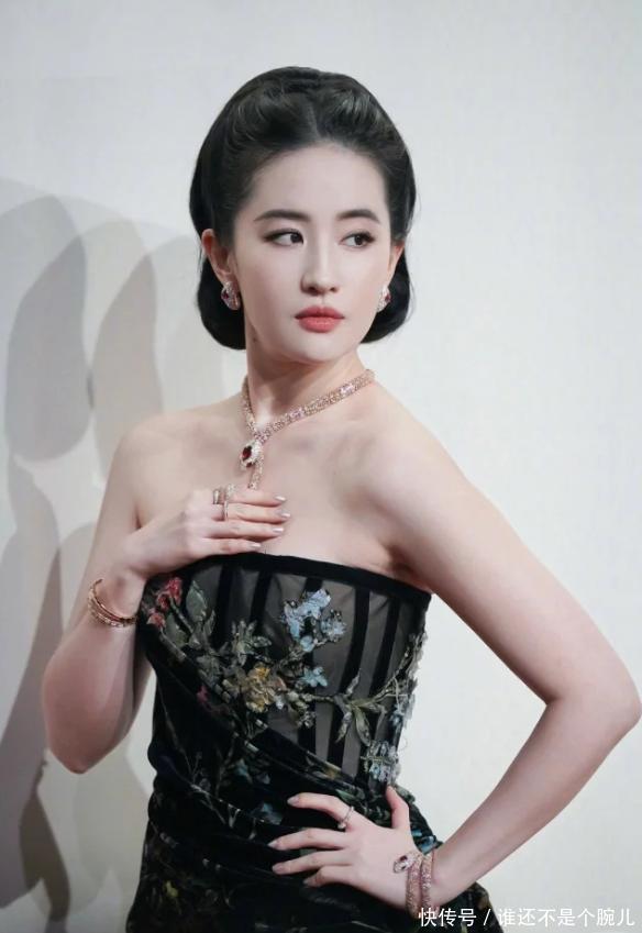 因为刘亦菲的发型特意为了配合“蛇年”,弄了个“灵蛇髻”,发尾盘起来显得很端庄,但是一配合上礼服,就显得有点老气了。