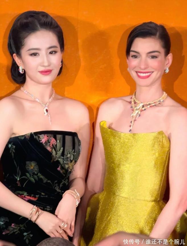 和安妮海瑟薇同框同为宝格丽代言人,这次刘亦菲的生图状态还真没有42岁的安妮海瑟薇好。
